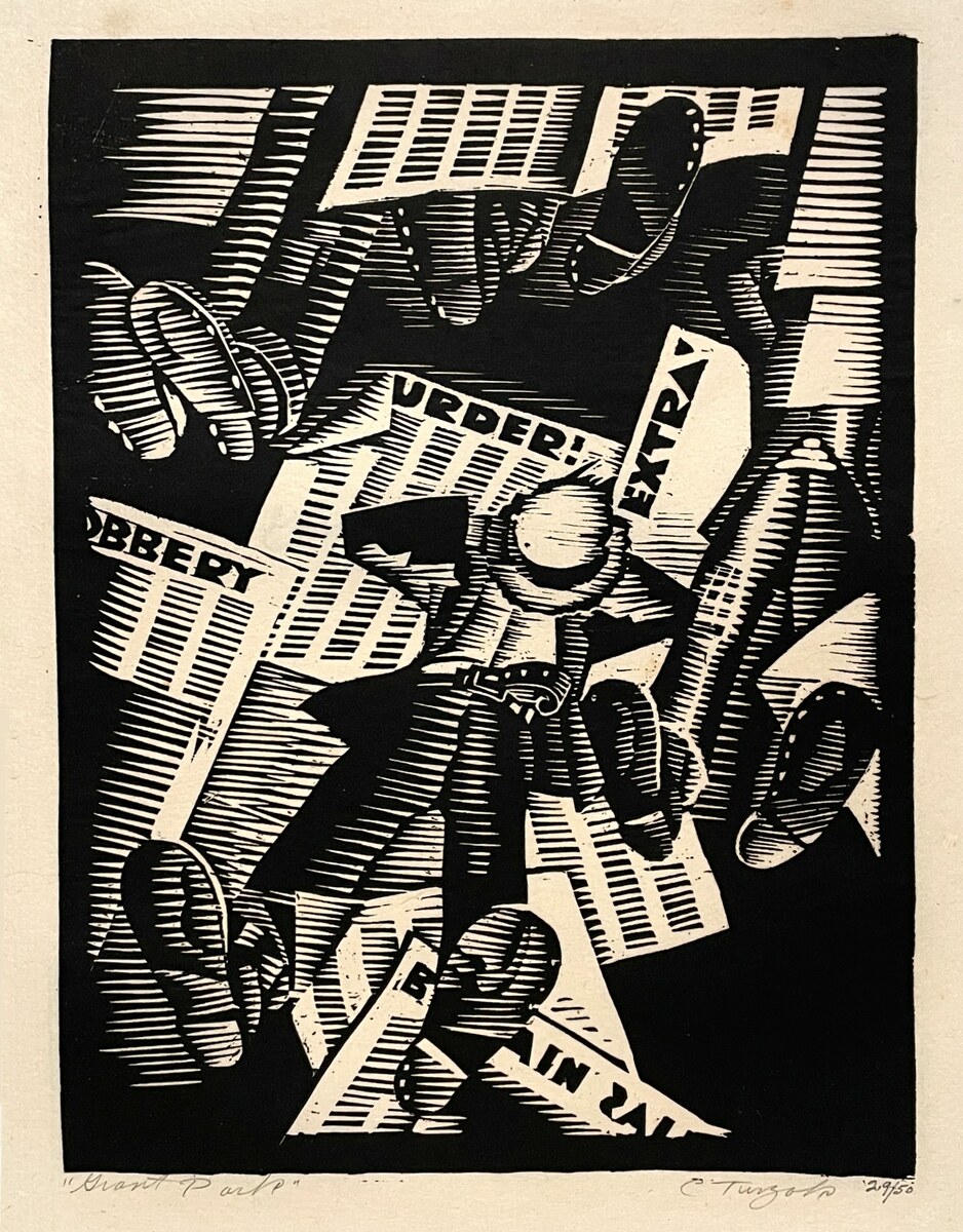 Charles Turzak exhibited at the Art Institute if Chicago in 1940, and also created a WPA post office mural in Lemont, IL. His works can be found in the collections of such museums of the Art Institute of Chicago, the Terra Foundation of American Art, the Smithsonian, Washington, D.C, among others. Later in life, Turzak retired to the Orlando Florida area, where he continued to create prints and paint until his death in 1986.