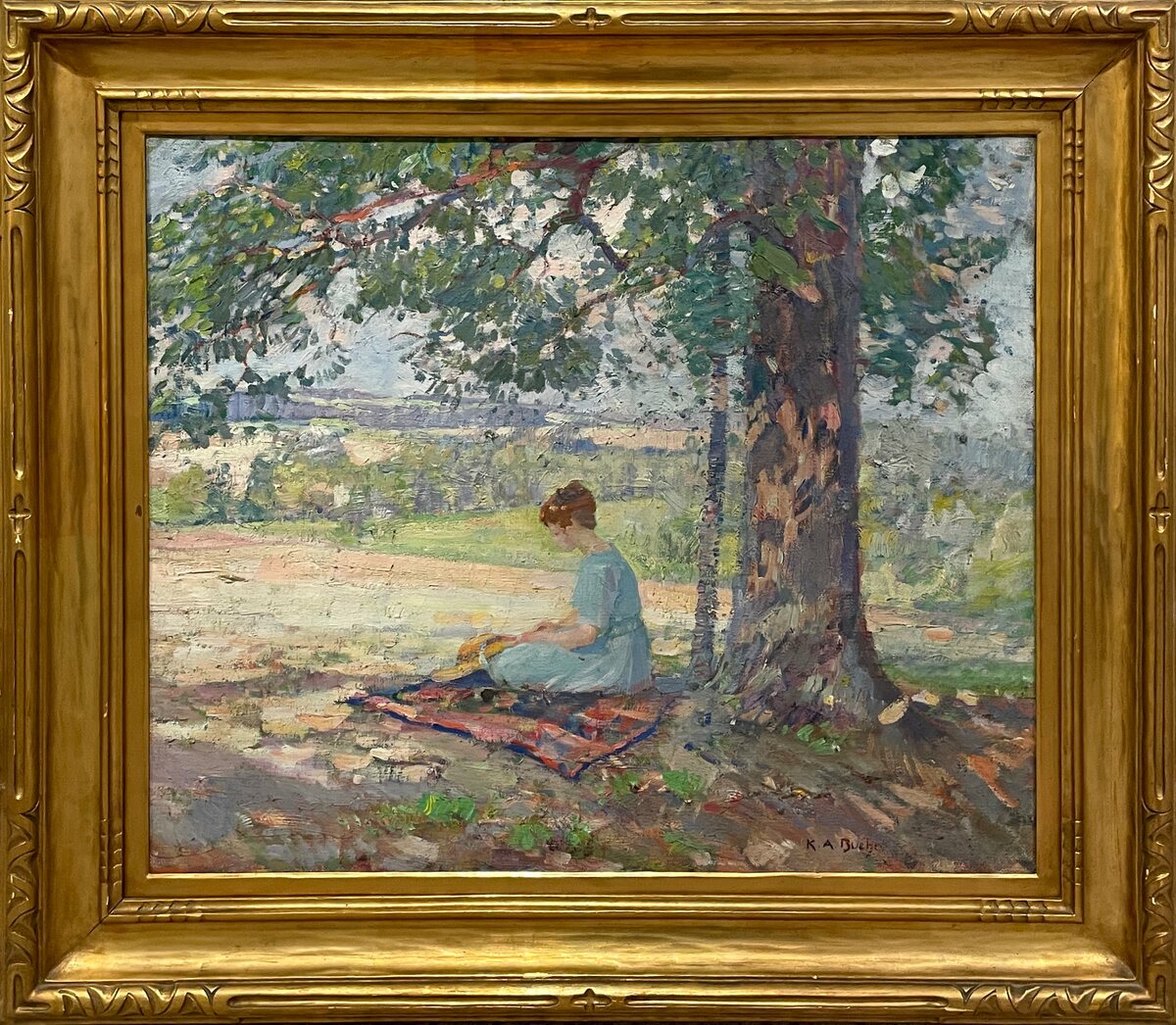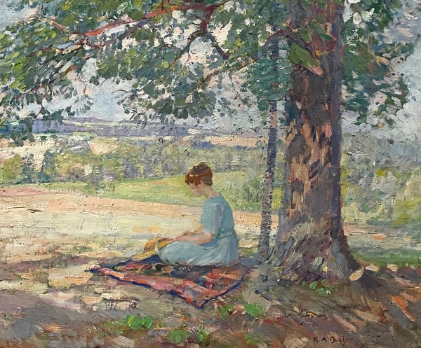 Karl Buehr’s contribution to American Impressionism has long been recognized through his colorful landscapes and vibrant figurative paintings completed in the first decades of the twentieth century. Buehr was born in 1866 to a prosperous German family that moved to America and settled in Chicago in 1881. After briefly working with a commercial lithographer, Buehr began his formal art training in 1888 at the city’s prestigious School of the Art Institute. In 1894, after graduating with honors, Buehr was invited by his alma mater to instruct classes at the School. He would continue to work and study at the Art Institute through 1897.