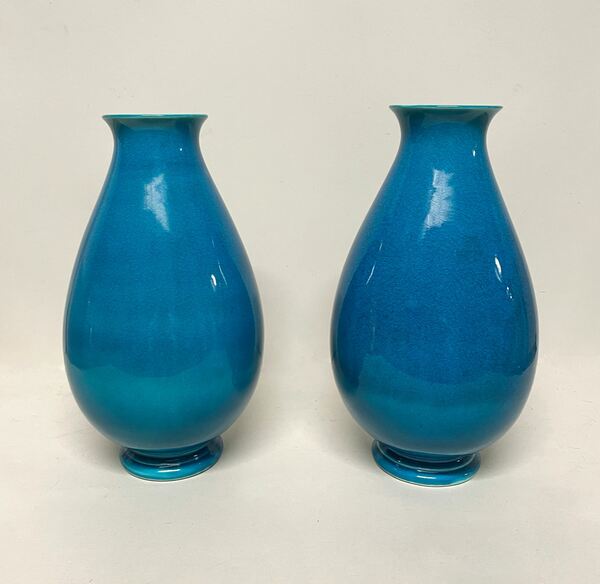 A Pair of Robertson of Hollywood Art Deco Turquoise Glazed Vases, ca. 1934