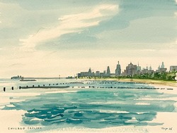 Alex Topp (Topchevsky)American, 1911 - 1999Chicago Skyline, 1956Watercolor on paper13 3/4 x 7 inches