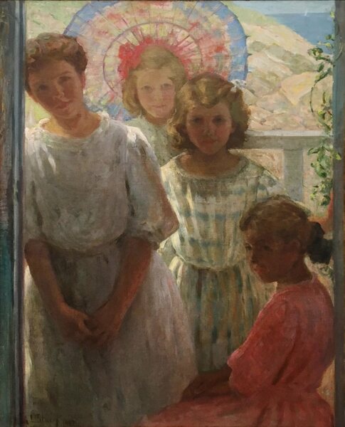 Anna Lee Dey Stacey was best known as a painter of marine and figure subjects. She lived in Chicago at the famed Tree Studios colony of artists. She was born in Glasgow, Missouri in 1865 and studied at the Kansas City Art Association’s School of Design, the Art Institute of Chicago and the Academie Delecluse in France.