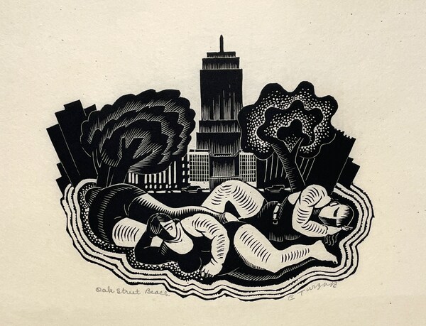 Charles Turzak was one of Chicago’s greatest printmakers of the Art Deco-era. Son of a coal miner, Charles Turzak was born in Streeter, IL in 1899. In 1920, Turzak won the first prize a cartoon contest sponsored by the Purina company and he used his prize money to enroll in the Art Institute of Chicago. Best known as a print maker, in the 1920s & 30s, he created woodcuts of many of Chicago’s most notable buildings, including the Merchandise Mart, Palmolive Building and the Old Water Tower, among others. In 1933, he was commissioned to create woodcuts of many of Chicago’s most iconic buildings to illustrate a guidebook called “All About Chicago” by John and Ruth Ashenhurst” that featured the upcoming Century of Progress Exhibition in Chicago. During the 1933 World’s Fair, Turzak sold a book and collection of prints he created about Abraham Lincoln. Later, he created other series of prints dedicated to other patriots, such as Benjamin Franklin and Alexander Hamilton. Some of these prints also illustrated Federal Hardware and Implement Mutuals Company of Dallas calendars.