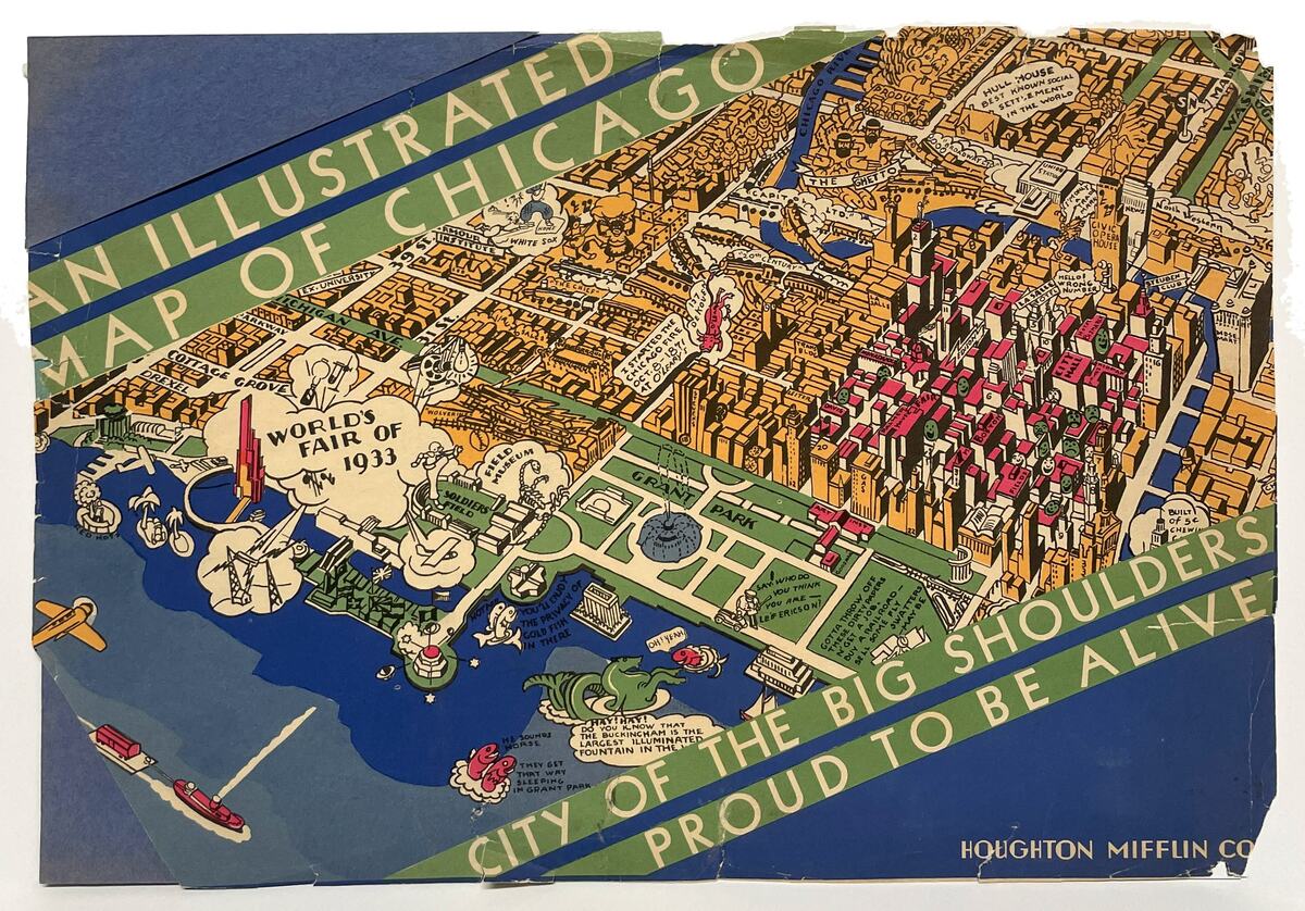 An Illustrated Map of Chicago Published by Houghton Mifflin Company, Tudor Press, Boston, MA , ca. 1931