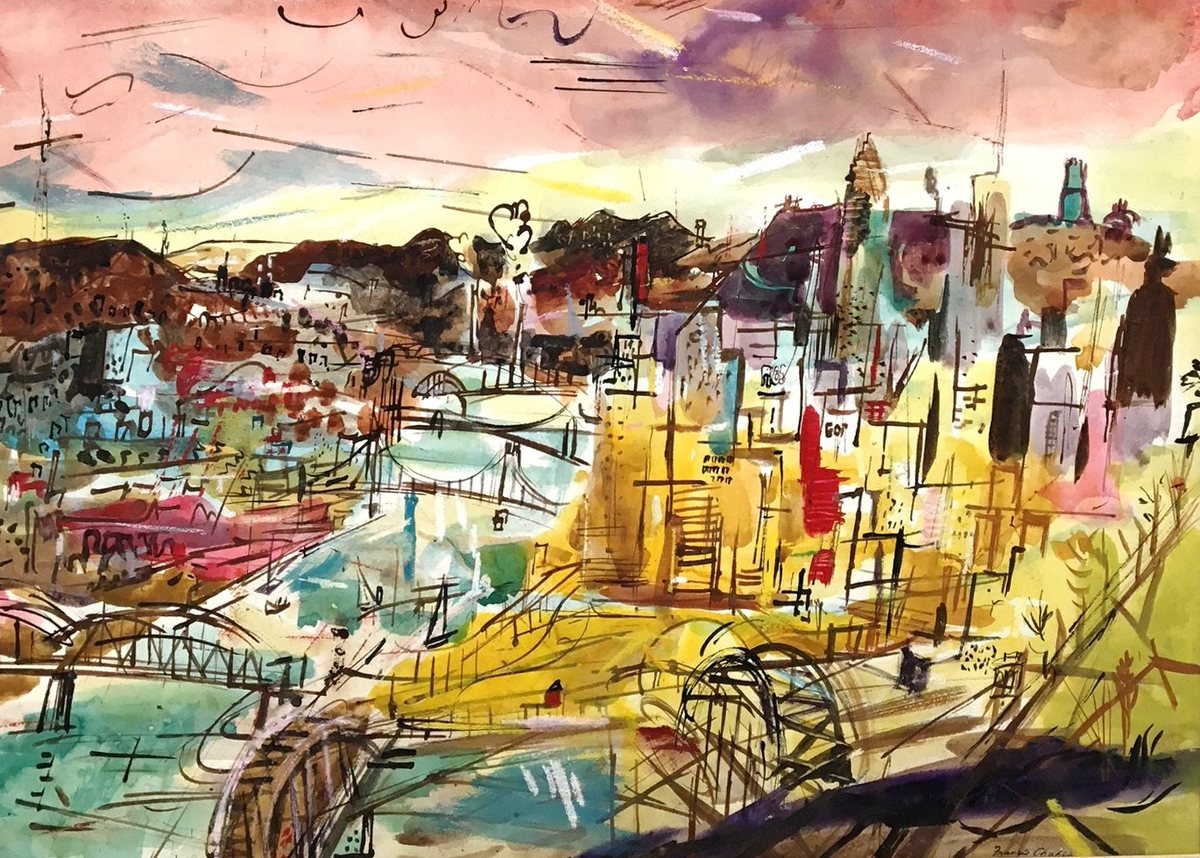 A prolific painter, Chapin produced numerous works while traveling in Mexico, France, Spain, Saugatuck and Martha’s Vineyard, where he frequently spent summers and taught at the Old Sculpin Gallery there. Chapin was best recognized for his dynamic and vibrant images of Chicago during the 1930s and '40s. Chapin was a resident of the city's Old Town neighborhood where he lived and kept his studio on Menomonee Street for many years. Described as a “colorful figure, nearly 6 feet 6 inches tall, and thin, and usually wearing tweeds”, it is easy to imagine Chapin at work observing the busy street life of the city.