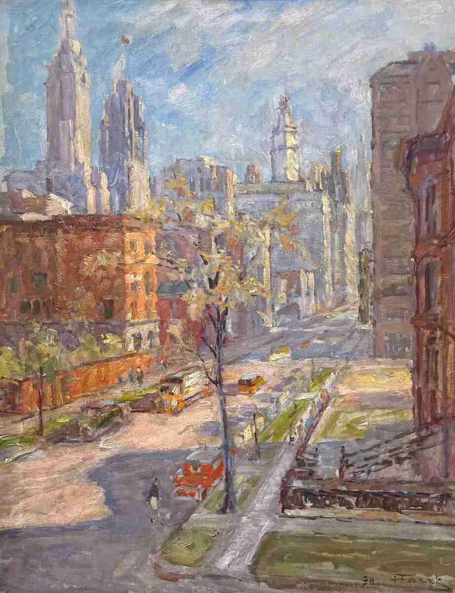 Henri Farre was born in Foix, France in 1871. He is best known for his paintings of WWI aerial battles. Farre flew in the cockpits along with the pilots of the famed Lafayette Escadrille, sketching the air battles as they were taking place. After the battles, Farre created finished, larger oil paintings based on these dogfight sketches. He was given the title of "Observateur Bombardier au Groupe d'Escadreille de Bombardment" by the French government and received the Legion of Honor and the Croix de Guerre from France for his war efforts. Farre wrote a book of his exploits called "Sky Fighters of France" in 1919. He exhibited at the Paris Salons and won a gold medal at the Salon des Artists Francais in 1934. In 1918, a large collection of Farre's aerial combat paintings was exhibited at the Art Institute of Chicago to benefit the children of the French aviators killed in action. The exhibition received a nationwide audience, traveling to major cities such as New York, Boston, Philadelphia and Washington D.C. Laurance Rockefeller, the noted philanthropist and businessman, purchased approximately 75 of these paintings, which are today in the Collection of the Smithsonian's National Air & Space Museum in Washington, D.C. Farre spent time in the U.S. before the Great War and returned to France upon the outbreak of war. After WWI, he settled in Chicago and maried an heiress, who was a 'modiste' (couturier), Marguerite Grassino. Farre lived and painted in Chicago until his death in 1934.