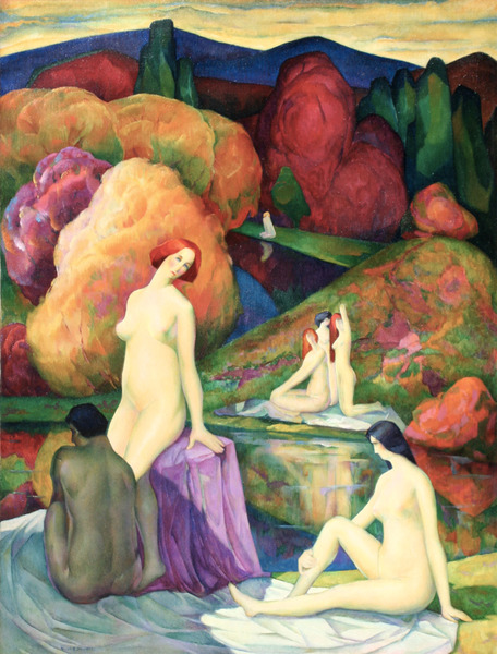 William S. Schwartz’s emigrated from Smorgen, Russia to New York city at the age of 16. He had already studied at the Vilna Art School from 1908-1912. At the age of 19, he won a scholarship to the Art Institute of Chicago. During his Art Institute tenure, Schwartz supported himself as a tenor, singing in vaudeville, radio and operatic venues. Proficient in both figurative and abstract forms of painting, his important "Symphonic Forms” series is among his most notable. The "Symphonic Forms" series was inspired from the artist's spiritual interpretations of classical music and poetry. Fourteen of his first “Symphonic Forms” paintings were exhibited at the Art Institute of Chicago in the acclaimed one-man show dedicated to William Schwartz in 1935. The show was even favorably reviewed by “Time Magazine”. Schwartz completed sixty-six canvases in his "Symphonic Forms" series during the years 1924 to 1967. According to the artist's log book, a document carefully compiled by Schwartz and his wife, Mona, each of these paintings were numbered consecutively and were never shown publicly until Schwartz's 1935 one-man Art Institute exhibition.